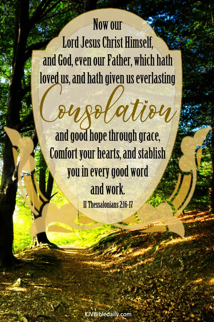 Previous Image Next Image II Thessalonians 2-16-17 KJV Share this:Tweet Share on WhatsApp (Opens in new window) WhatsApp Print (Opens in new window) Print Share on Reddit (Opens in new window) Reddit Email a link to a friend (Opens in new window) Email Share on Tumblr Share on Telegram (Opens in new window) Telegram Like Loading...