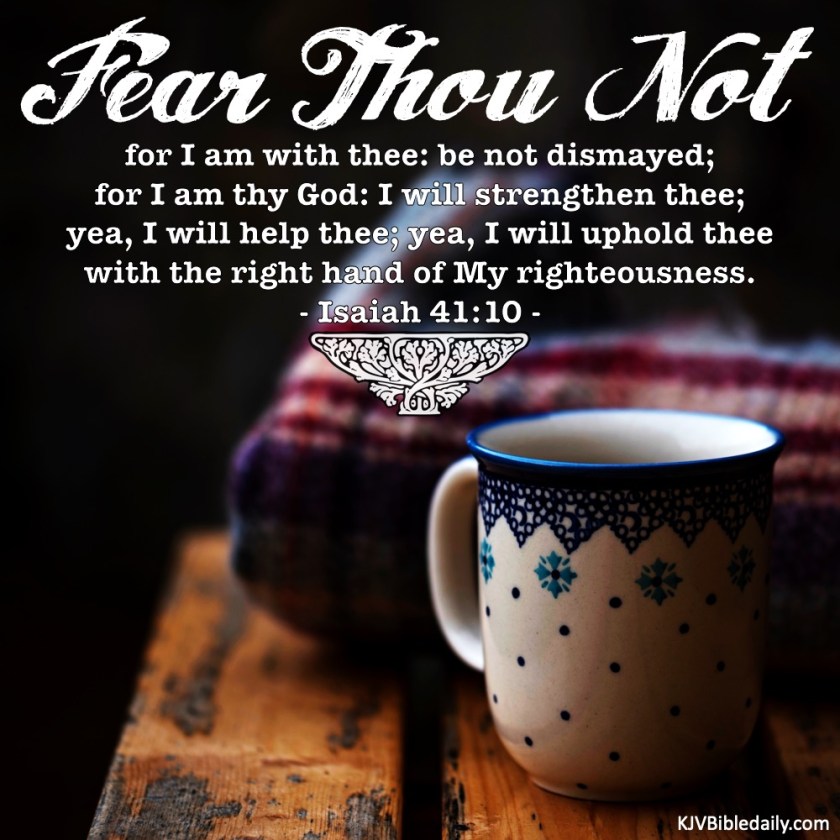 Previous Image Next Image Isaiah 41-10 KJV Share this:Tweet Share on WhatsApp (Opens in new window) WhatsApp Print (Opens in new window) Print Share on Reddit (Opens in new window) Reddit Email a link to a friend (Opens in new window) Email Share on TumblrPocket Share on Telegram (Opens in new window) Telegram Like Loading...