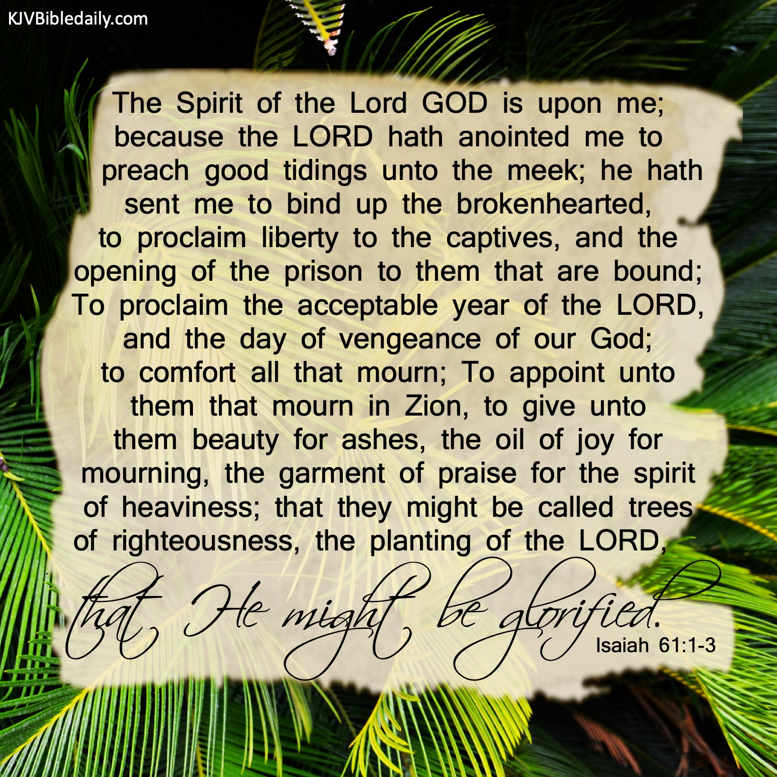 Previous Image Next Image isaiah-61-1-3-kjv Share this:Tweet Share on WhatsApp (Opens in new window) WhatsApp Print (Opens in new window) Print Share on Reddit (Opens in new window) Reddit Email a link to a friend (Opens in new window) Email Share on Tumblr Share on Telegram (Opens in new window) Telegram Like Loading...