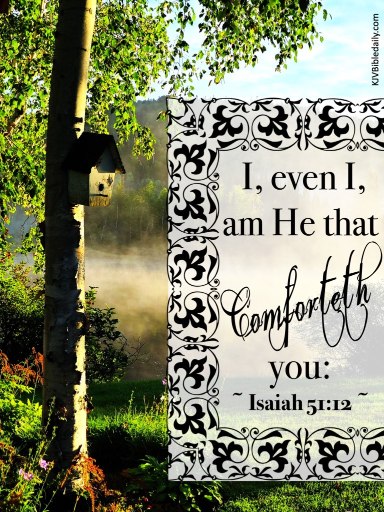Previous Image Next Image Isaiah 51-12 KJV Share this:Tweet Share on WhatsApp (Opens in new window) WhatsApp Print (Opens in new window) Print Share on Reddit (Opens in new window) Reddit Email a link to a friend (Opens in new window) Email Share on Tumblr Share on Telegram (Opens in new window) Telegram Like Loading...