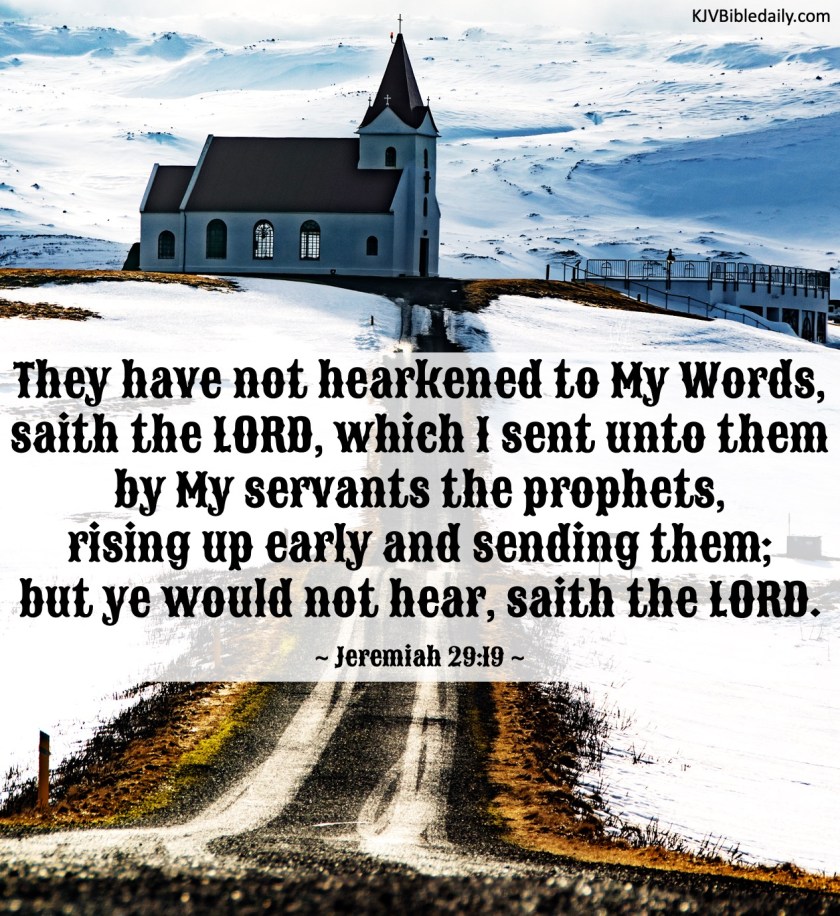 Previous Image Next Image Jeremiah 29-19 KJV Share this:Tweet Share on WhatsApp (Opens in new window) WhatsApp Print (Opens in new window) Print Share on Reddit (Opens in new window) Reddit Email a link to a friend (Opens in new window) Email Share on Tumblr Share on Telegram (Opens in new window) Telegram Like Loading...