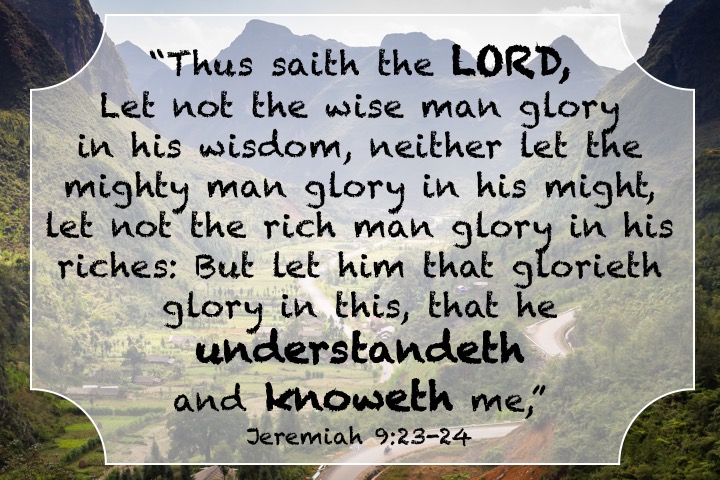 Previous Image Next Image Jeremiah 9.23-24 English Share this:Tweet Share on WhatsApp (Opens in new window) WhatsApp Print (Opens in new window) Print Share on Reddit (Opens in new window) Reddit Email a link to a friend (Opens in new window) Email Share on Tumblr Share on Telegram (Opens in new window) Telegram Like Loading...