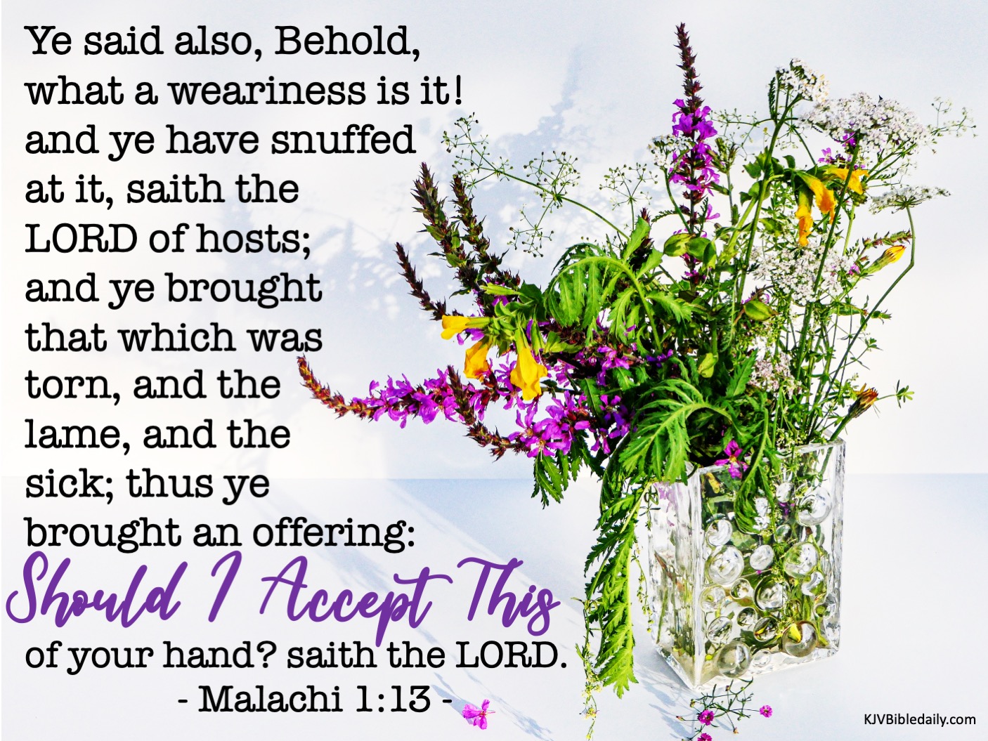 Previous Image Next Image Malachi 1-13 KJV Share this:Tweet Share on WhatsApp (Opens in new window) WhatsApp Print (Opens in new window) Print Share on Reddit (Opens in new window) Reddit Email a link to a friend (Opens in new window) Email Share on Tumblr Share on Telegram (Opens in new window) Telegram Like Loading...