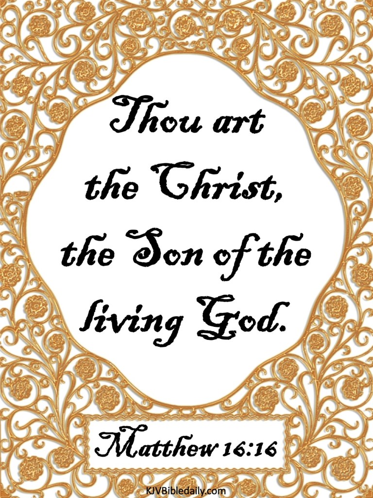 Previous Image Next Image Matthew 16-16 KJV Share this:Tweet Share on WhatsApp (Opens in new window) WhatsApp Print (Opens in new window) Print Share on Reddit (Opens in new window) Reddit Email a link to a friend (Opens in new window) Email Share on Tumblr Share on Telegram (Opens in new window) Telegram Like Loading...
