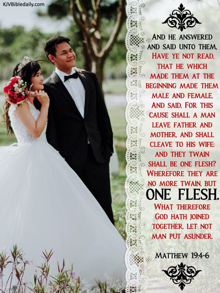 Previous Image Next Image Matthew 19 4-6 KJV Share this:Tweet Share on WhatsApp (Opens in new window) WhatsApp Print (Opens in new window) Print Share on Reddit (Opens in new window) Reddit Email a link to a friend (Opens in new window) Email Share on Tumblr Share on Telegram (Opens in new window) Telegram Like Loading...