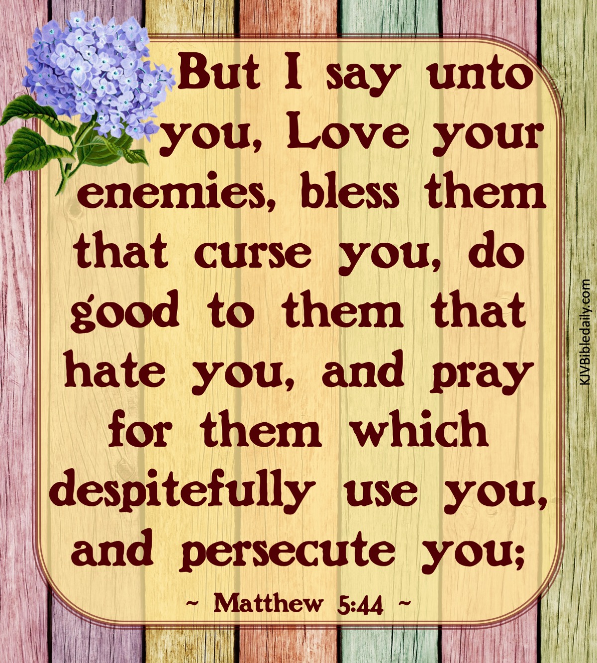 Previous Image Next Image Matthew 5 44 KJV Share this:Tweet Share on WhatsApp (Opens in new window) WhatsApp Print (Opens in new window) Print Share on Reddit (Opens in new window) Reddit Email a link to a friend (Opens in new window) Email Share on Tumblr Share on Telegram (Opens in new window) Telegram Like Loading...