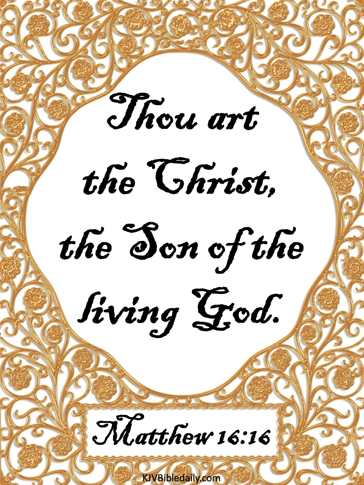Previous Image Next Image Matthew 16-16 KJV Share this:Tweet Share on WhatsApp (Opens in new window) WhatsApp Print (Opens in new window) Print Share on Reddit (Opens in new window) Reddit Email a link to a friend (Opens in new window) Email Share on Tumblr Share on Telegram (Opens in new window) Telegram Like Loading...