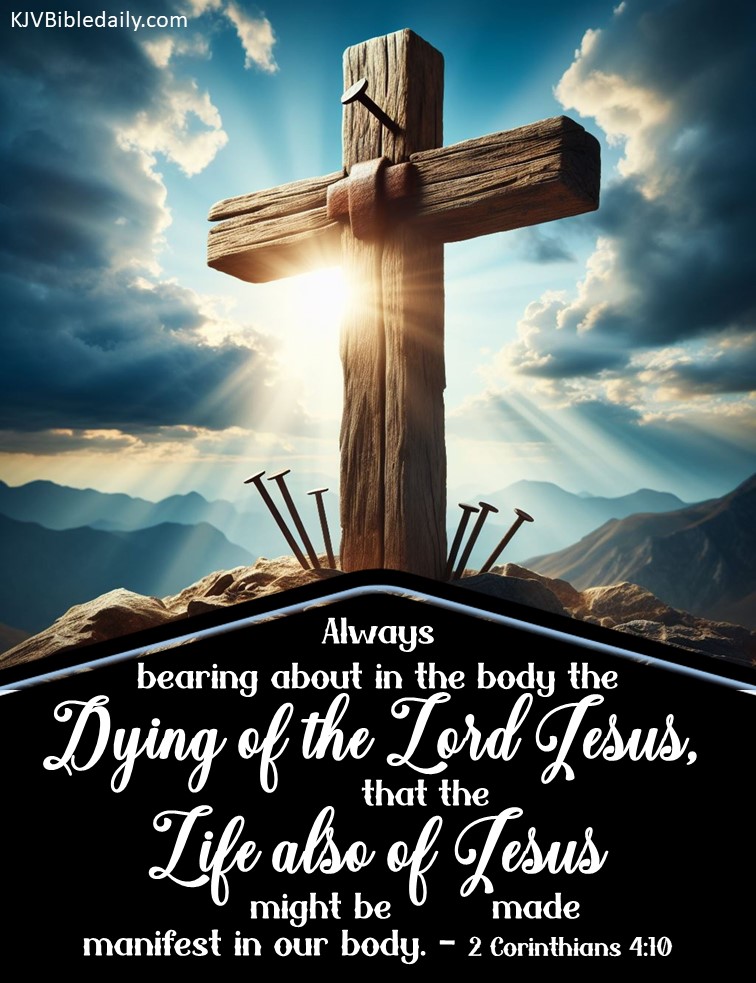 2 Corinthians 4:10 KJV Share this:Tweet Share on WhatsApp (Opens in new window) WhatsApp Print (Opens in new window) Print Share on Reddit (Opens in new window) Reddit Email a link to a friend (Opens in new window) Email Share on TumblrPocket Share on Telegram (Opens in new window) Telegram Like Loading...