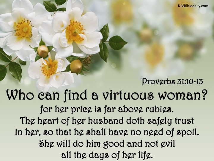 Previous Image Next Image proverbs-31-10-13-kjv Share this:Tweet Share on WhatsApp (Opens in new window) WhatsApp Print (Opens in new window) Print Share on Reddit (Opens in new window) Reddit Email a link to a friend (Opens in new window) Email Share on Tumblr Share on Telegram (Opens in new window) Telegram Like Loading...