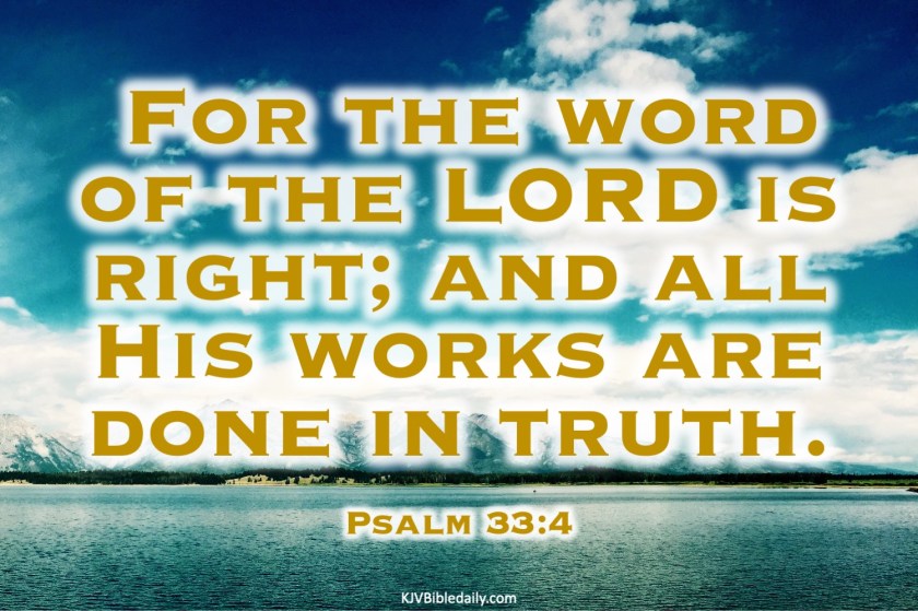 Previous Image Next Image Psalm 33-4 KJV Share this:Tweet Share on WhatsApp (Opens in new window) WhatsApp Print (Opens in new window) Print Share on Reddit (Opens in new window) Reddit Email a link to a friend (Opens in new window) Email Share on Tumblr Share on Telegram (Opens in new window) Telegram Like Loading...