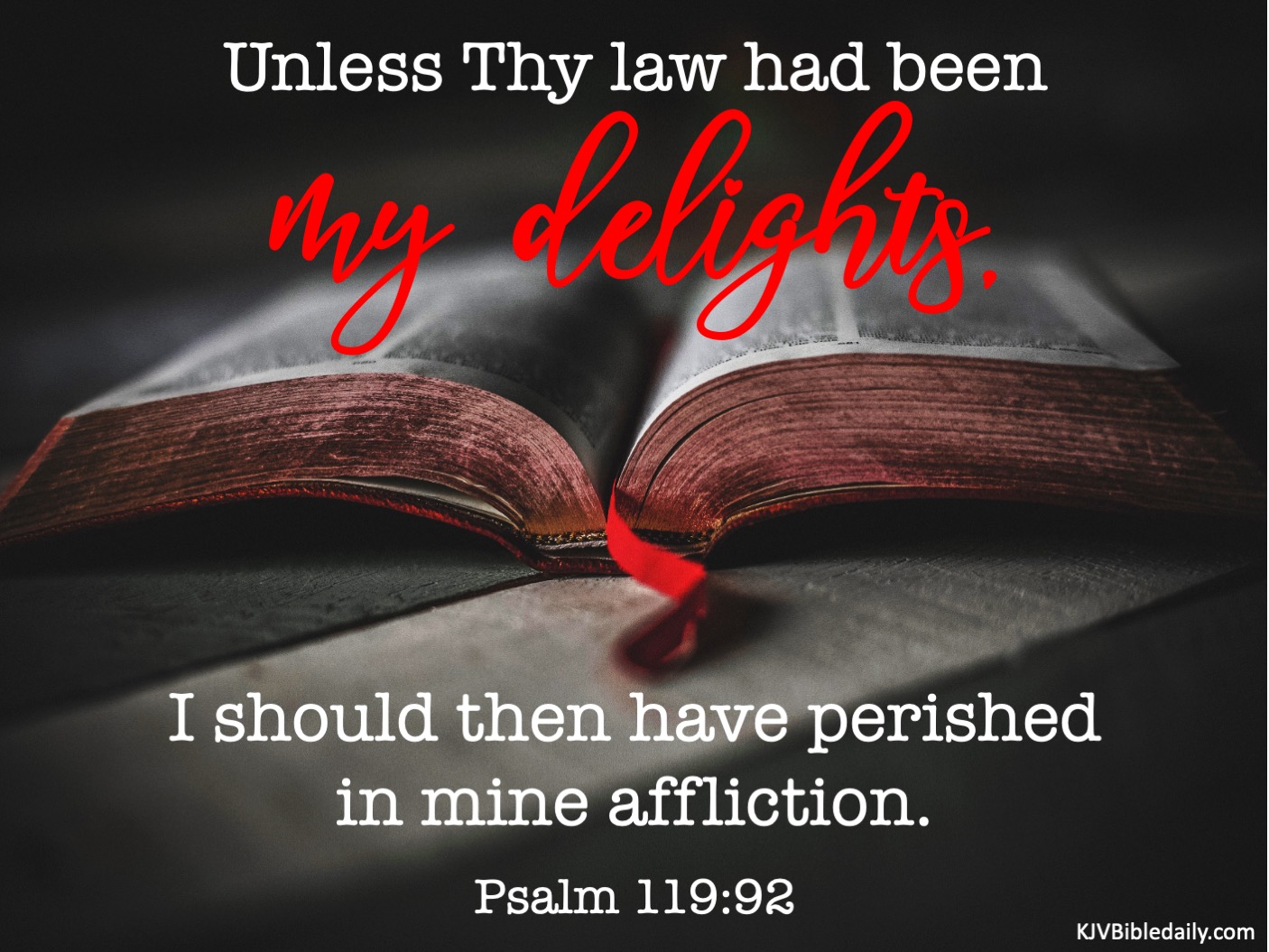 Previous Image Next Image Psalm 119-92 KJV Share this:Tweet Share on WhatsApp (Opens in new window) WhatsApp Print (Opens in new window) Print Share on Reddit (Opens in new window) Reddit Email a link to a friend (Opens in new window) Email Share on Tumblr Share on Telegram (Opens in new window) Telegram Like Loading...
