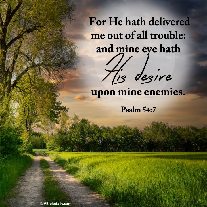Previous Image Next Image psalm-54-7-kjv Share this:Tweet Share on WhatsApp (Opens in new window) WhatsApp Print (Opens in new window) Print Share on Reddit (Opens in new window) Reddit Email a link to a friend (Opens in new window) Email Share on TumblrPocket Share on Telegram (Opens in new window) Telegram Like Loading...
