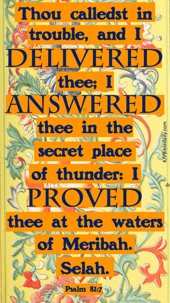 Previous Image Next Image Psalm 81-7 KJV Share this:Tweet Share on WhatsApp (Opens in new window) WhatsApp Print (Opens in new window) Print Share on Reddit (Opens in new window) Reddit Email a link to a friend (Opens in new window) Email Share on Tumblr Share on Telegram (Opens in new window) Telegram Like Loading...