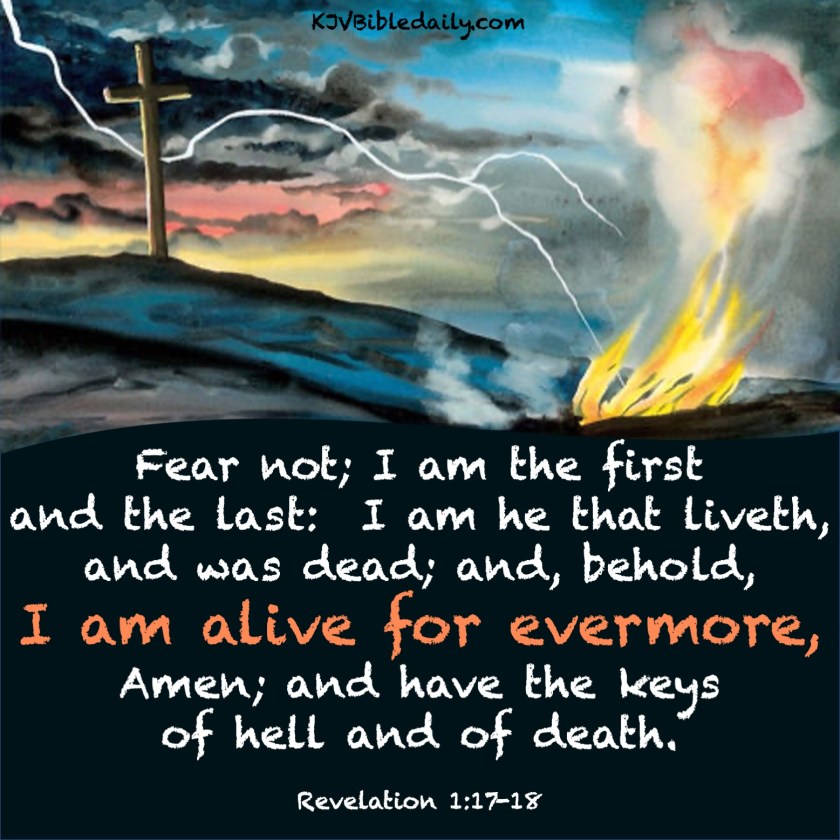Previous Image Next Image revelation-1-18-kjv Share this:Tweet Share on WhatsApp (Opens in new window) WhatsApp Print (Opens in new window) Print Share on Reddit (Opens in new window) Reddit Email a link to a friend (Opens in new window) Email Share on Tumblr Share on Telegram (Opens in new window) Telegram Like Loading...