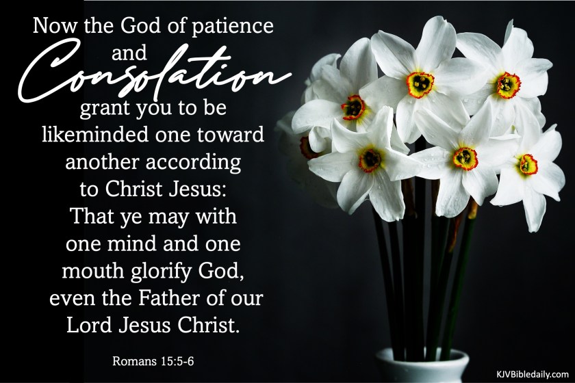 Previous Image Next Image romans-15-5-6-kjv Share this:Tweet Share on WhatsApp (Opens in new window) WhatsApp Print (Opens in new window) Print Share on Reddit (Opens in new window) Reddit Email a link to a friend (Opens in new window) Email Share on Tumblr Share on Telegram (Opens in new window) Telegram Like Loading...