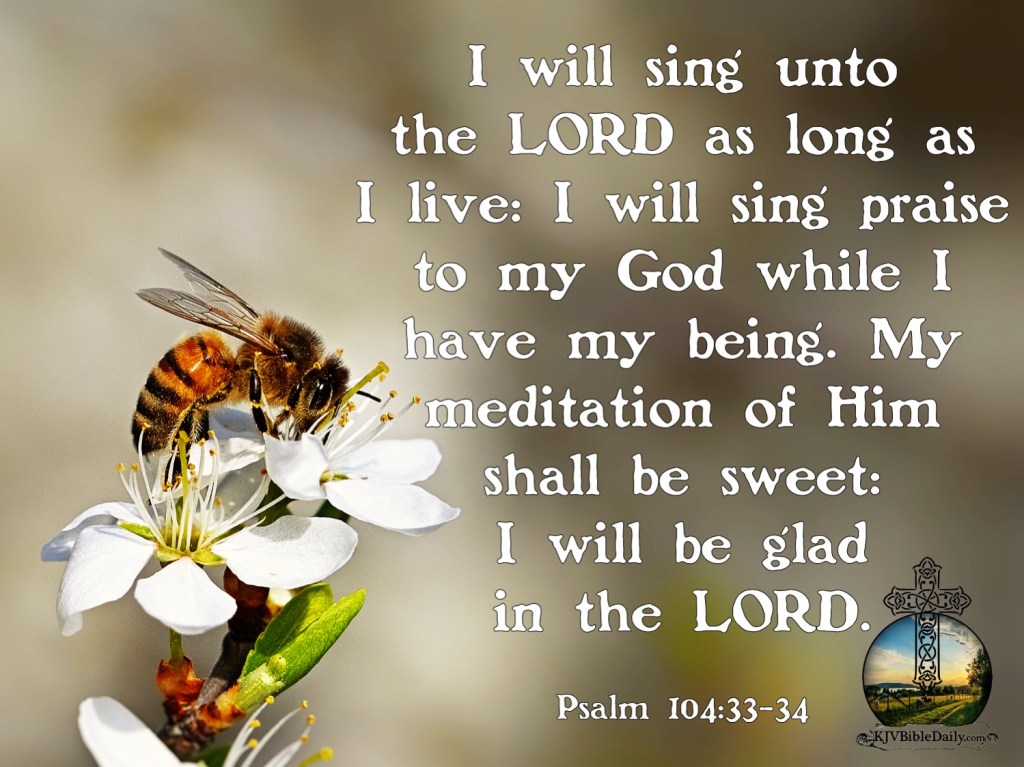 Psalm 104:33-34 KJV Share this:Tweet Share on WhatsApp (Opens in new window) WhatsApp Print (Opens in new window) Print Share on Reddit (Opens in new window) Reddit Email a link to a friend (Opens in new window) Email Share on Tumblr Share on Telegram (Opens in new window) Telegram Like Loading...