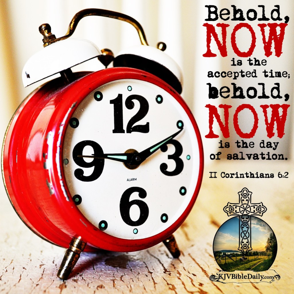II Corinthians 6:2 KJV Share this:Tweet Share on WhatsApp (Opens in new window) WhatsApp Print (Opens in new window) Print Share on Reddit (Opens in new window) Reddit Email a link to a friend (Opens in new window) Email Share on Tumblr Share on Telegram (Opens in new window) Telegram Like Loading...