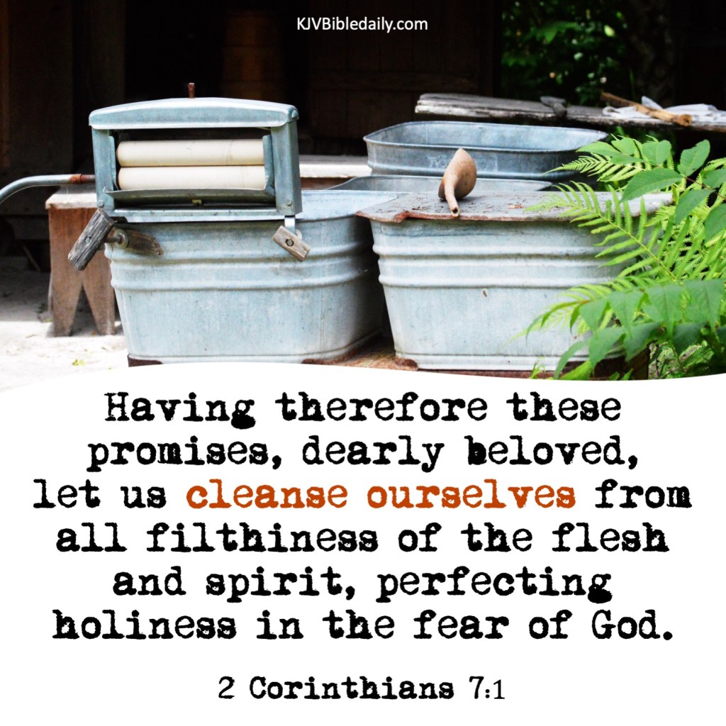 II Corinthians 7:1 KJV Share this:Tweet Share on WhatsApp (Opens in new window) WhatsApp Print (Opens in new window) Print Share on Reddit (Opens in new window) Reddit Email a link to a friend (Opens in new window) Email Share on Tumblr Share on Telegram (Opens in new window) Telegram Like Loading...