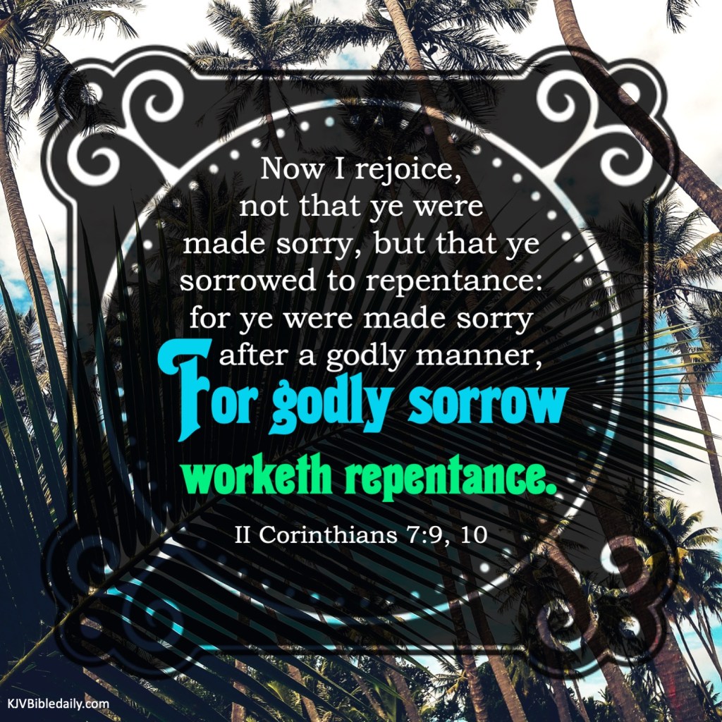 II Corinthians 7:9, 10 KJV Share this:Tweet Share on WhatsApp (Opens in new window) WhatsApp Print (Opens in new window) Print Share on Reddit (Opens in new window) Reddit Email a link to a friend (Opens in new window) Email Share on Tumblr Share on Telegram (Opens in new window) Telegram Like Loading...