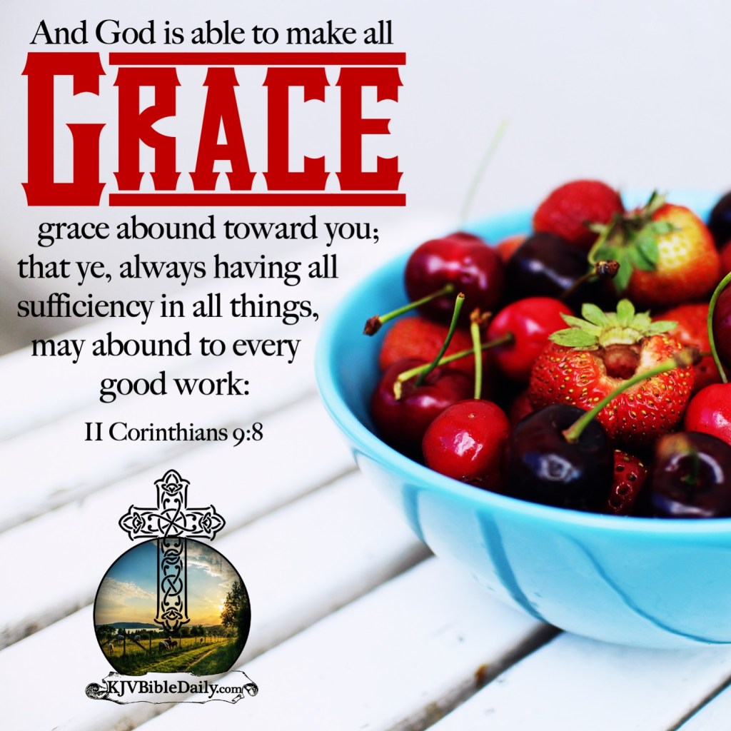II Corinthians 9:8 KJV Share this:Tweet Share on WhatsApp (Opens in new window) WhatsApp Print (Opens in new window) Print Share on Reddit (Opens in new window) Reddit Email a link to a friend (Opens in new window) Email Share on Tumblr Share on Telegram (Opens in new window) Telegram Like Loading...