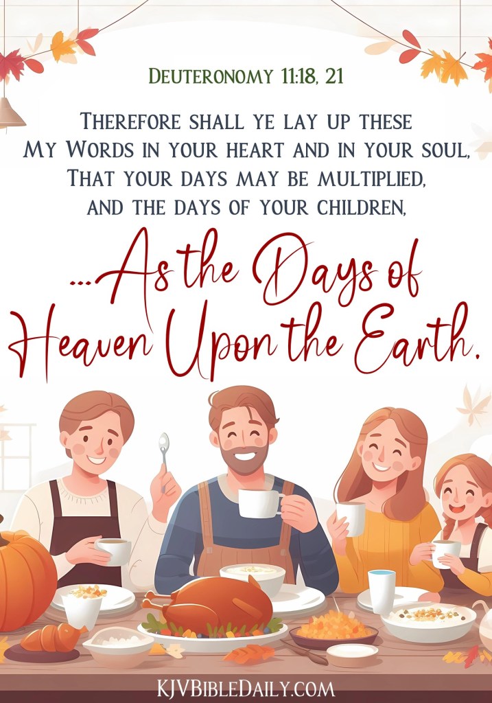 Deuteronomy 11:18, 21 KJV Share this:Tweet Click to share on WhatsApp (Opens in new window) WhatsApp Click to print (Opens in new window) Print Click to share on Reddit (Opens in new window) Reddit Click to email a link to a friend (Opens in new window) Email Share on TumblrPocket Click to share on Telegram (Opens in new window) Telegram Like Loading...