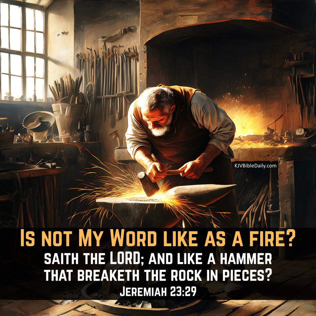 Jeremiah 23:29 KJV Share this:Tweet Click to share on WhatsApp (Opens in new window) WhatsApp Click to print (Opens in new window) Print Click to share on Reddit (Opens in new window) Reddit Click to email a link to a friend (Opens in new window) Email Share on TumblrPocket Click to share on Telegram (Opens in new window) Telegram Like Loading...