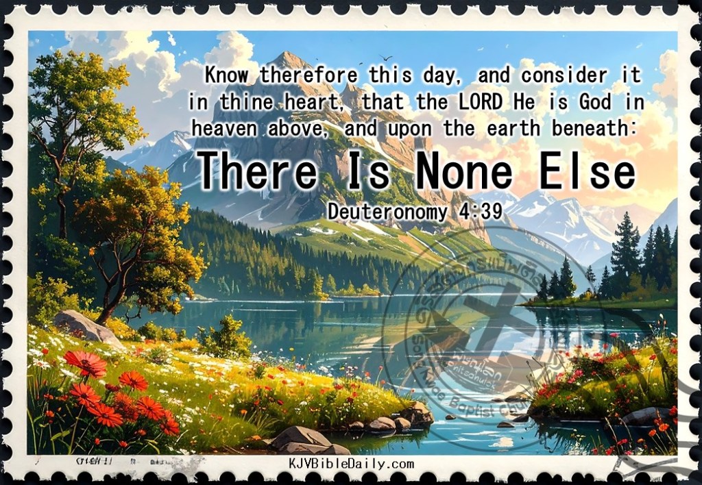 Deuteronomy 4:39 KJV Share this:Tweet Click to share on WhatsApp (Opens in new window) WhatsApp Click to print (Opens in new window) Print Click to share on Reddit (Opens in new window) Reddit Click to email a link to a friend (Opens in new window) Email Share on TumblrPocket Click to share on Telegram (Opens in new window) Telegram Like Loading...